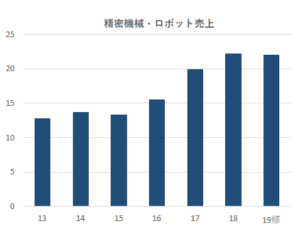 精密機械・ロボット事業を取り巻く経営環境は、建設機械市場向けでは、足元では国内顧客が令和元年台風19号で被災したメーカーからの部品調達が滞り、減産となったことや、インド・インドネシアといった新興国および韓国市場の販売低迷により減収となったものの、今後は新興国を中心に堅調な需要があるものと見ている。