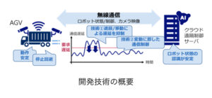 通信の状態をパケット単位でリアルタイムに分析し、変動する通信品質を予測した上で、最も遅延が少ない無線ネットワークに切り替える技術を開発した。これにより、品質の良いネットワークに接続し続けることができるため、通信遅延を抑え、AGV制御における通信の遅延要件の超過を避けることで、稼働停止を回避できるようになる。